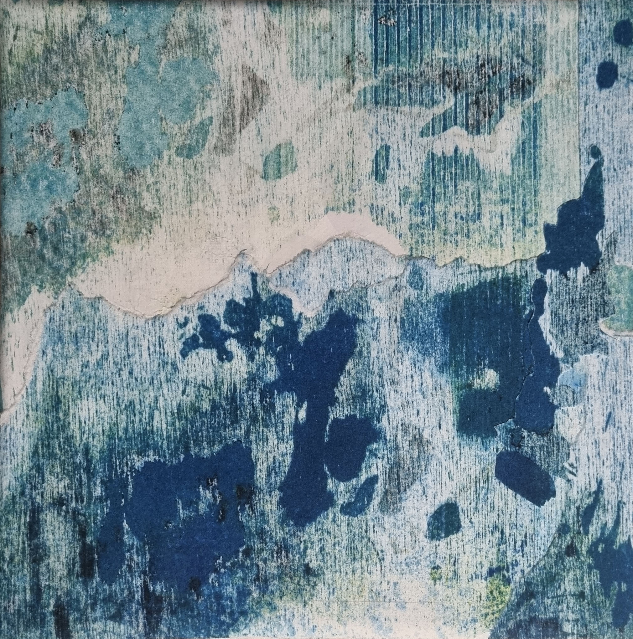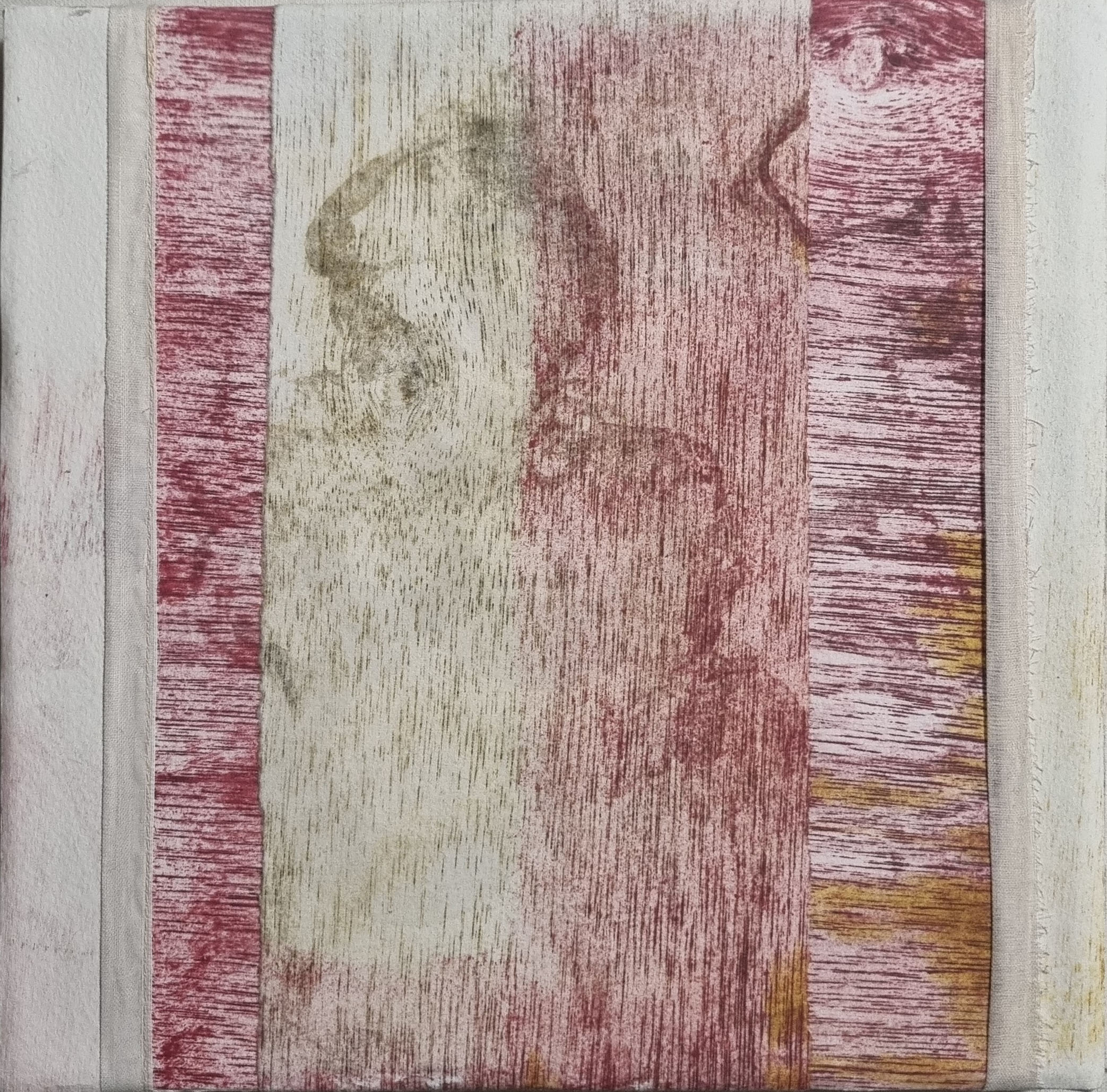 La gravure a toujours été pour moi, un outil de recherche en parallèle avec la peinture. J’ai fait de nombreuses linogravures, puis des monotypes, parfois les deux mêlés offrant une part d’aléatoire, me donnant des pistes à suivre.